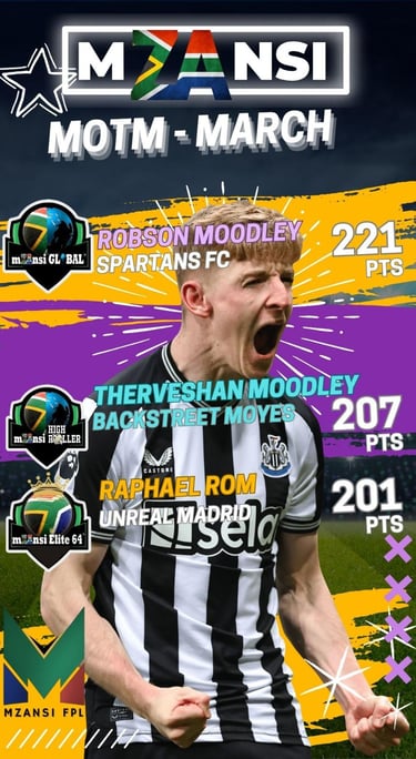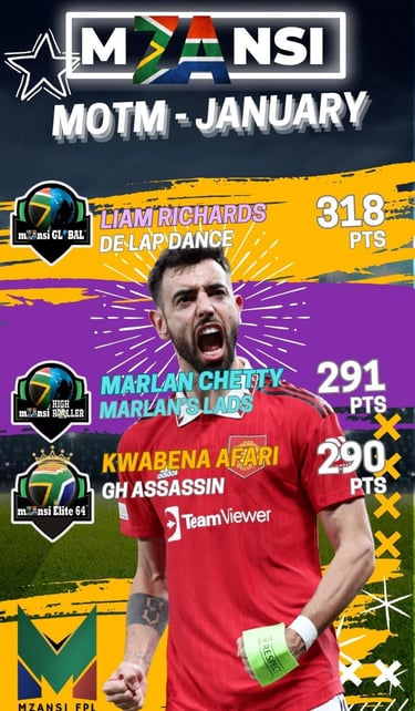 The freshest addition to the Mzansi FPL family. Monthly resets mean ten chances to win over the season, with around R3,000 up for grabs each month (final numbers pending). Perfect for those who like short-term bursts of competition and quick wins.